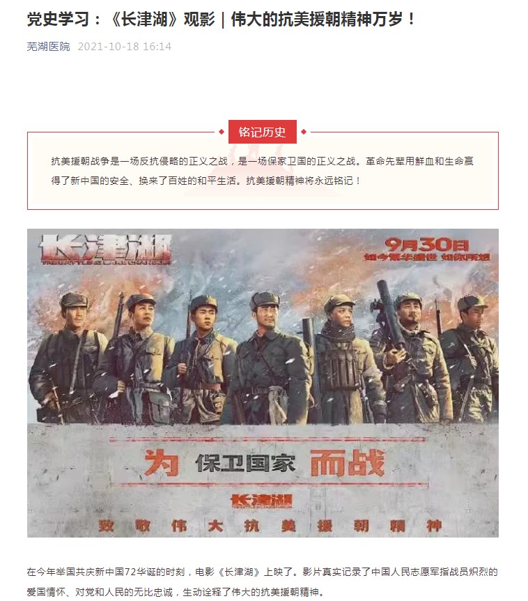 黨史學(xué)習(xí):《長(zhǎng)津湖》觀影|偉大的抗美援朝精神萬歲! |